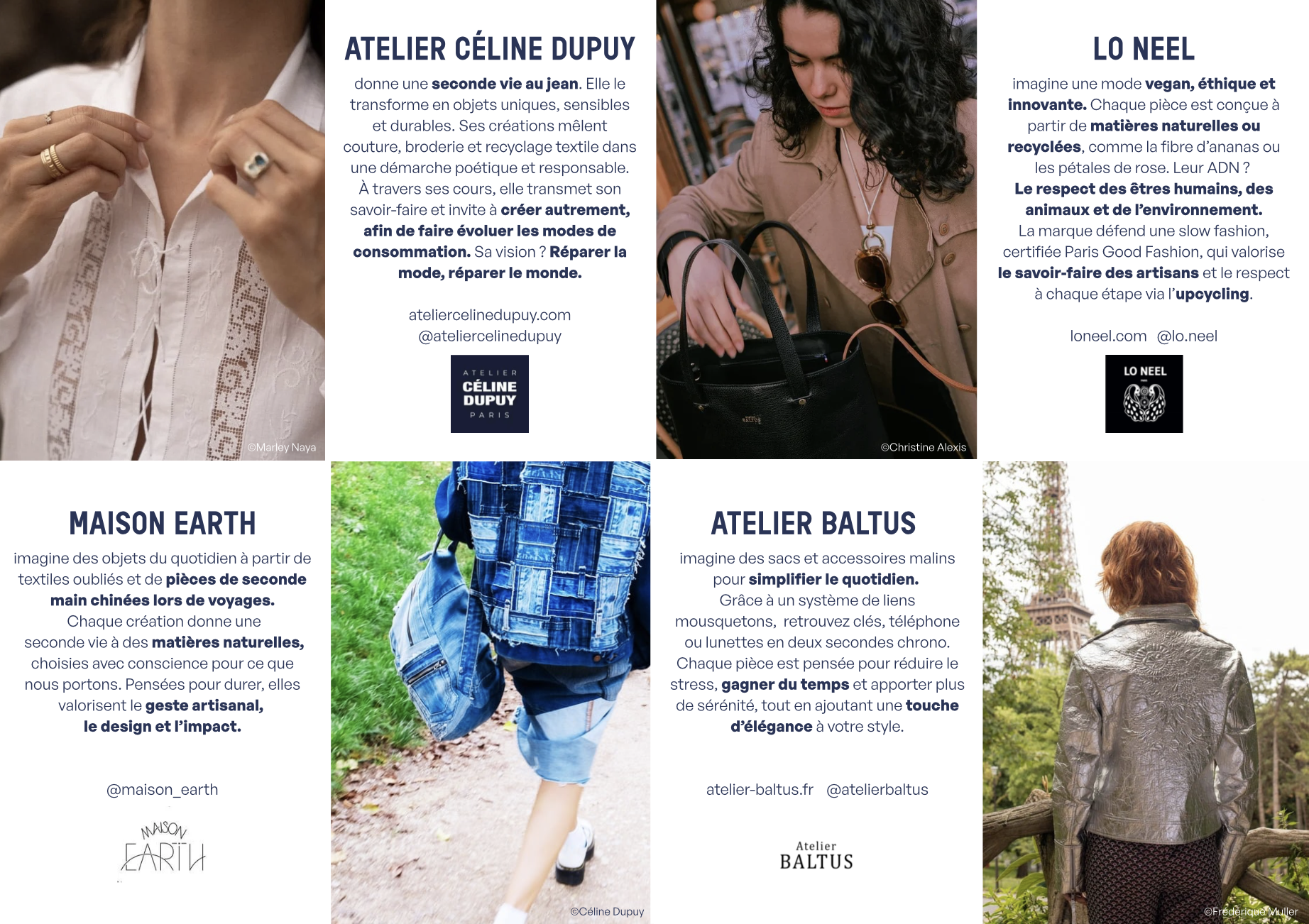 engagés en Île-de-France, en transmettant les savoir-faire arti- sanaux de la couture à la main, et en sensibilisant aux impacts sociaux et environnementaux de nos habitudes vestimentaires.